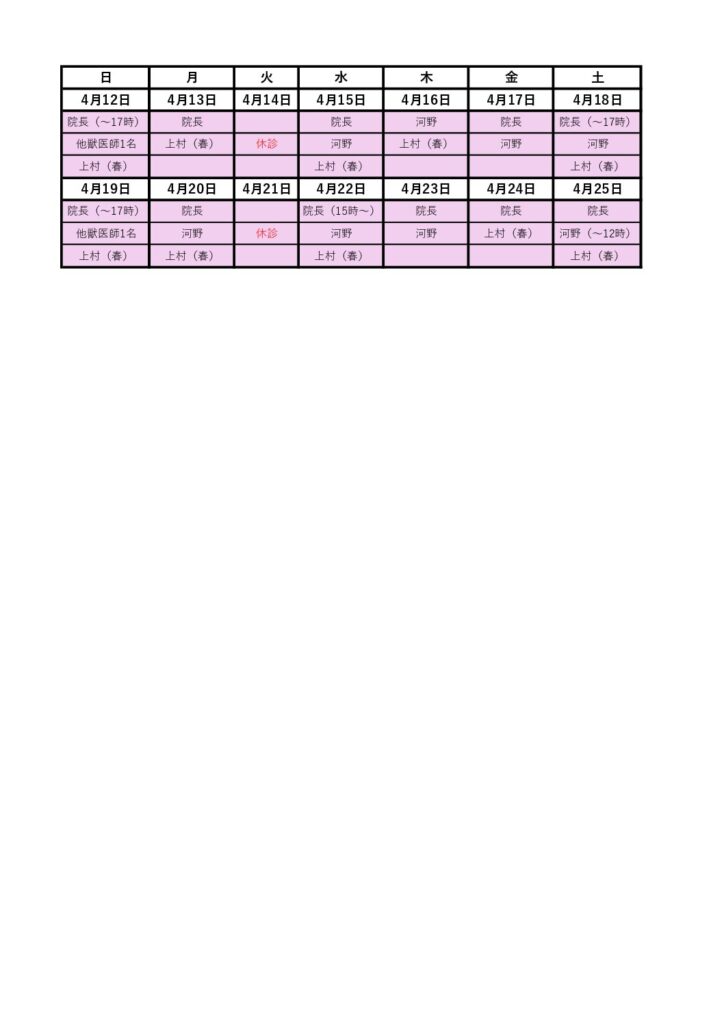 獣医師勤務表がグーグルカレンダーにおいて現在表記できない状態が続いています。